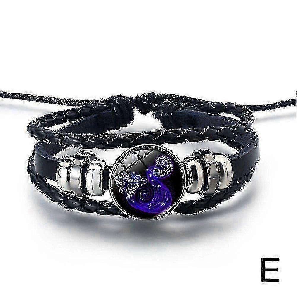 Gemstone Leather Bracelet for Serene Manifestation and Energy Improvement with 12 Constellations