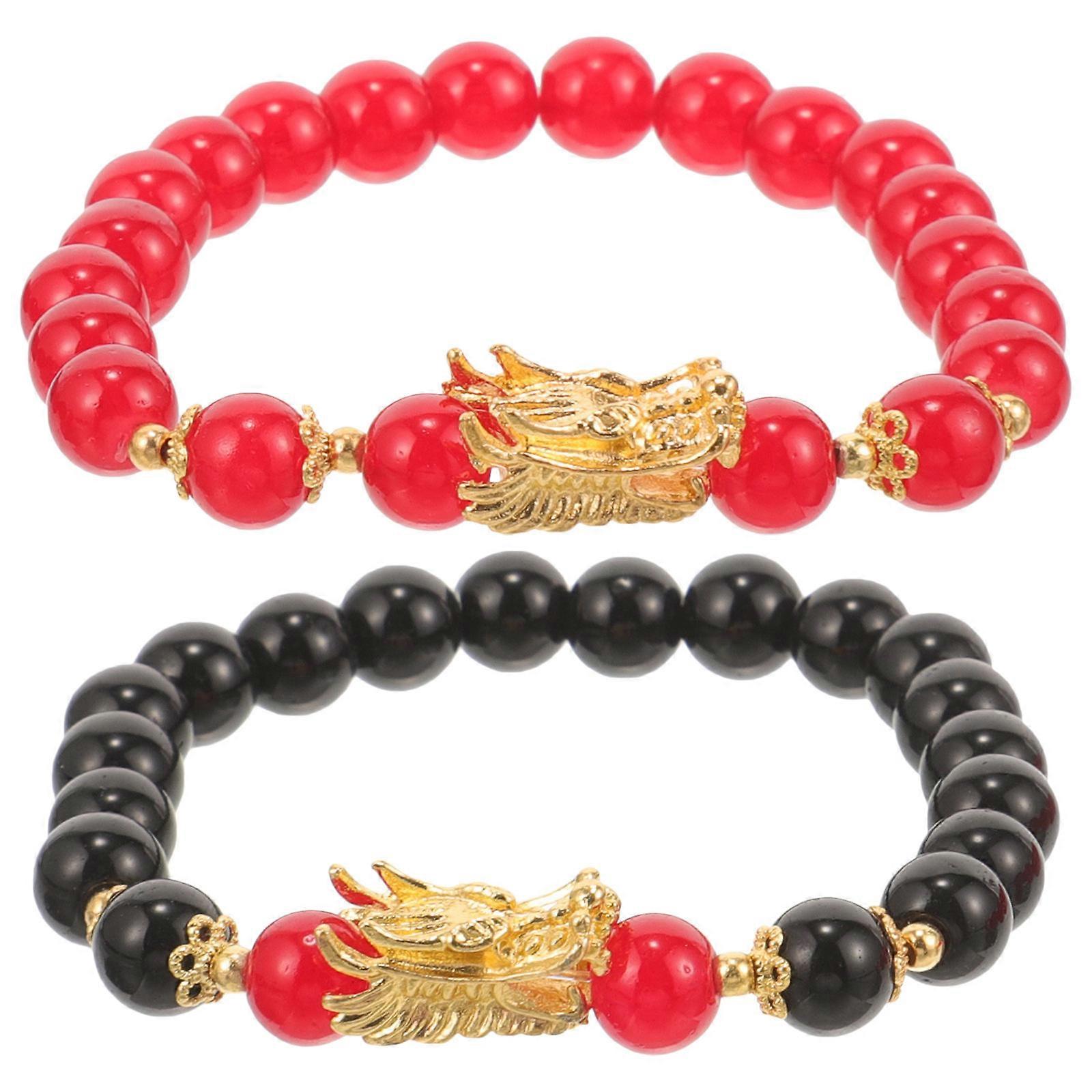 Dragon Bracelet for Decoration 2Pcs Chinese Zodiac Beaded Bracelets
