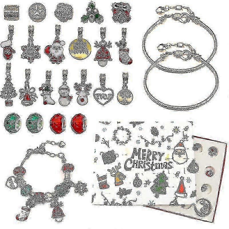 2025 Advent Calendar Bracelet 24 Days Countdown Christmas Theme Surprise Blind Box 22 Charm Beads 2 Bracelets For Kids Teens Women