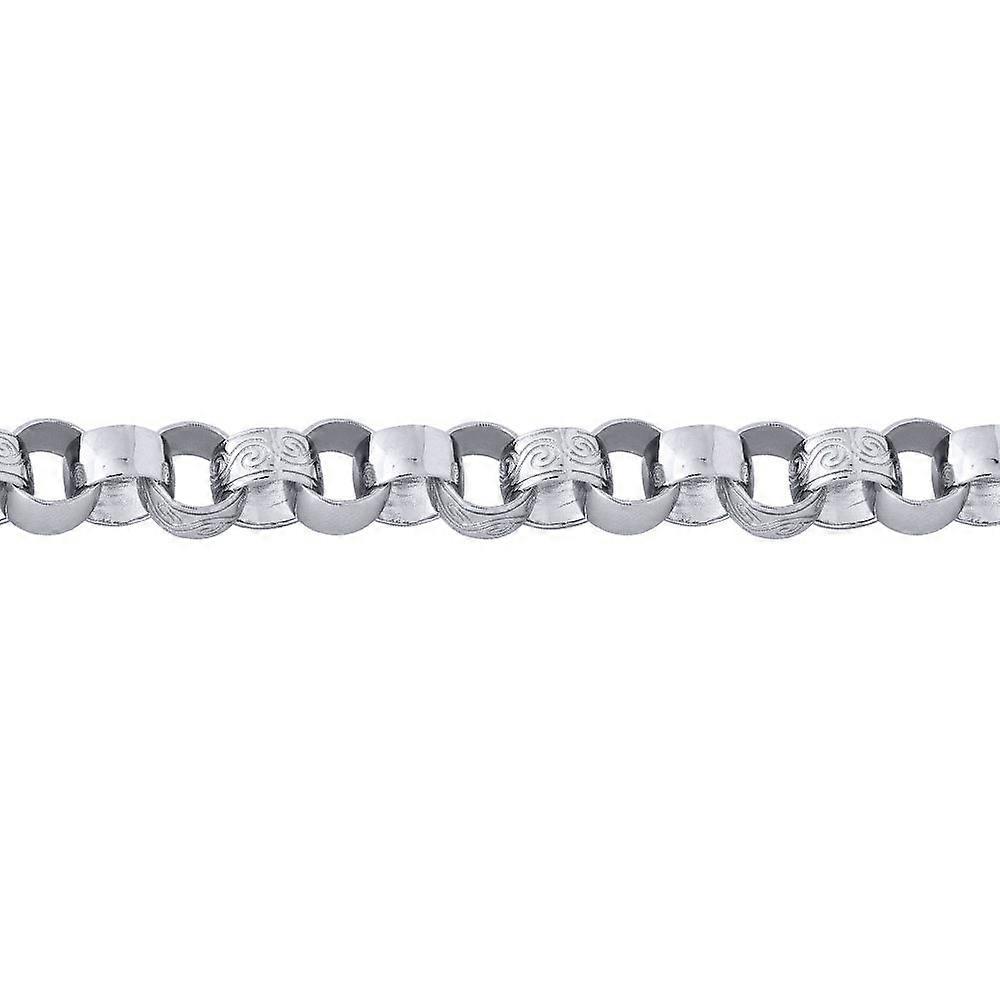 Jewelco London Men's Solid Rhodium-plated Silver Hand Assembled Engraved Cast Belcher 11.5mm Gauge Chain Bracelet, 9 inch 23cm