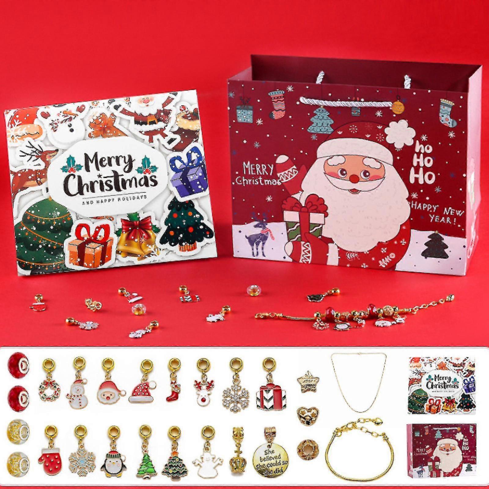 Christmas Advent Calendar Bracelet for Gold Jewelry with 24 Grid Gift Box