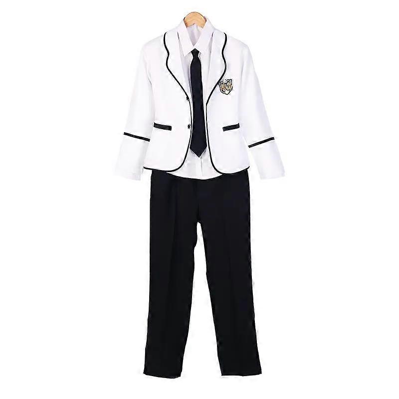 Welcome to our store. Fashion design, 100% new high quality product! Click on the store name to discover more adorable children's clothing in the store ! You can wear the academy school uniform in the occasions: casual, school, celebrations, cosplay shows, etc. Size Chart: Size: 120, Shoulder:39cm, Length:45cm, Bust:78cm, Waist:68cm, Hips:76cm, Sleeve:44cm, Height:115-120cm, pant Length:70cm Size: 130, Shoulder:40cm, Length:49cm, Bust:82cm, Waist:72cm, Hips:80cm, Sleeve:47cm, Height:125-130cm, pant Length:72cm Size: 140, Shoulder:41cm, Length:53cm, Bust:86cm, Waist:76cm, Hips:84cm, Sleeve:50cm, Height:135-140cm, pant Length:74cm Size: 150, Shoulder:42cm, Length:57cm, Bust:90cm, Waist:80cm, Hips:88cm, Sleeve:53cm, Height:145-150cm, pant Length:76cm Size: 160, Shoulder:43cm, Length:61cm, Bust:96cm, Waist:84cm, Hips:92cm, Sleeve:57cm, Height:155-160cm, pant Length:80cm Size: 170, Shoulder:44cm, Length:65cm, Bust:100cm, Waist:90cm, Hips:98cm, Sleeve:61cm, Height:165-170cm, pant Length:82cm Size: 180, Shoulder:45cm, Length:69cm, Bust:106cm, Waist:94cm, Hips:102cm, Sleeve:65cm, Height:175-180cm, pant Length:84cm Size: 190, Shoulder:46cm, Length:73cm, Bust:110cm, Waist:95cm, Hips:108cm, Sleeve:67cm, Height:185-190cm, pant Length:86cm Gender:Boys Material: Polyester 80%, Cotton 20% Color:As the picture show Style:British Item Type: Elementary School Students Occasion:Class wear,Performance,Couple Package include:1Pc Coat, 1Pc Shirt, 1Pc Pant, 1Pc Tie Tips: 1.The suggested age and height is just for your reference. If your measurement is floating between two sizes, advise choosing the larger size. 2.Colour may little vary due to different display setting. 3.There can be 1-2cm differences by manual measurement. Product type: School Uniform Label: Yes Washing: Hand wash cold, Iron at normal temperature <150C, Dry clean, Line dry in the Shade, Do not bleach.