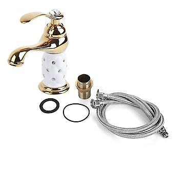 Solid Brass Mixer Tap Cold/Hot Water Faucet with Ornaments for Basin Sink (Chromed)