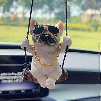 French Bulldog Car Mirror Hanging Accessories, Cute Swinging Dog Rear View Mirror Accessories for Men and Women, Funny Car Pendant for Rear View Mirro