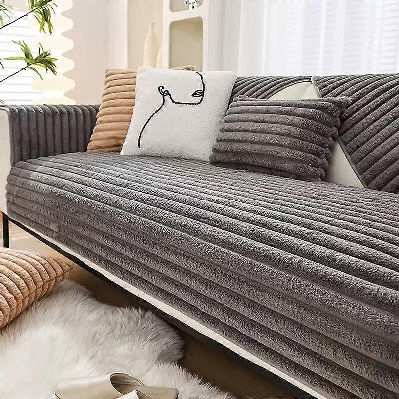 French Light Luxury Rabbit Plush Sofa Cushion Winter Thickened Warm Cream Wind Non Slip Leather Sofa Cushion