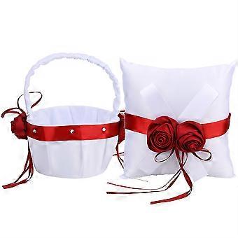 Wedding Girl Flower Basket and Ring Pillow Set Ring Bearer Cushion Pillow Basket for Wedding SuppliesFlower Basket+Ring Pillow