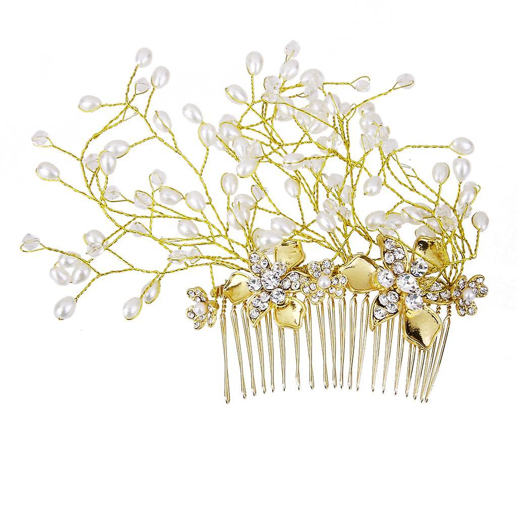 Wedding Bridal Hair Comb Golden Flower Crystal Pearl Headpiece Hair Decor