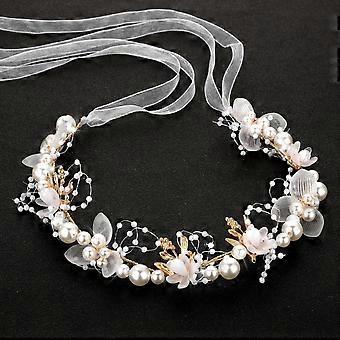 Wedding Bridal Pearl Headband, Flower Girl Pearl Hair Vine Princess Hair Accessories Crystal Headpieces for Women Wedding Party Photography (White)