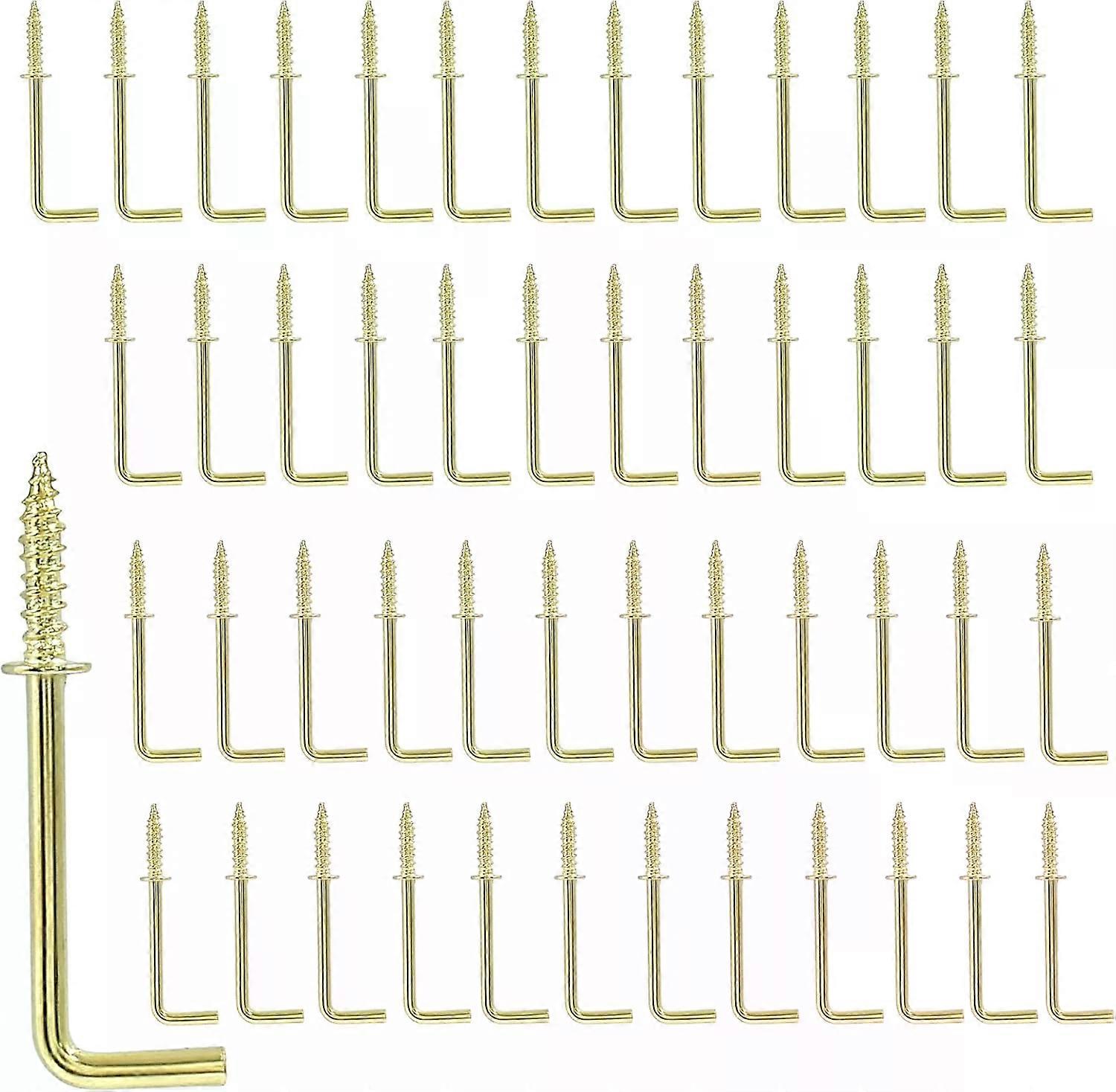 L Screw Hooks, 50Pcs 1-1/4 Inch Metal L Shaped Square Bend Gold Right Angle Hooks