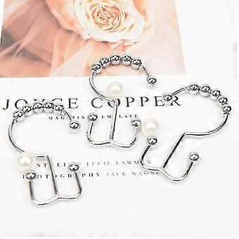 Shower Curtain Hooks Rust Resistant Shower Curtain Rings Metal Double Glide Rollers Shower Hooks For Bathroom Shower Curtain Rods Curtains(silve