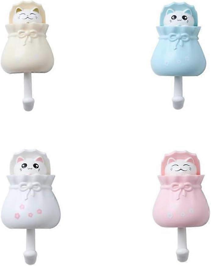 Wall Coat Hooks, Self Adhesive Animal Hooks, Cute Decorative Stick On Lucky Bag Cat Heavy Duty Hooks for Hanging Keys, Bags, Towels for Childrens Room