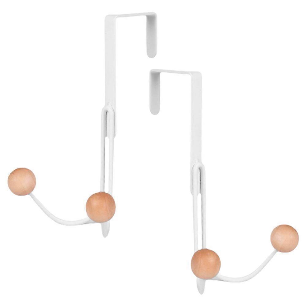 Over The Door Hook 2Pcs White Metal and Wood Strong Load-Bearing for Home Behind Door Hooks