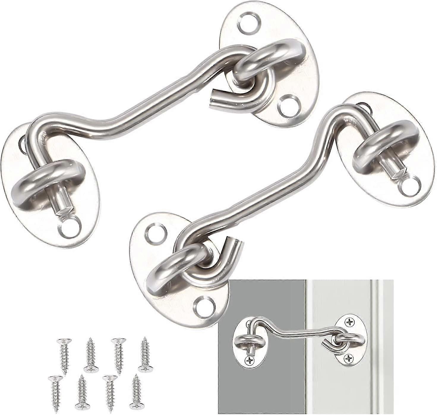 2 pieces cabin hook,door latch hook,silver stainless steel door hook lock,with mounting screws,for window,barn door,shed door,garage door(7.5cm) bette