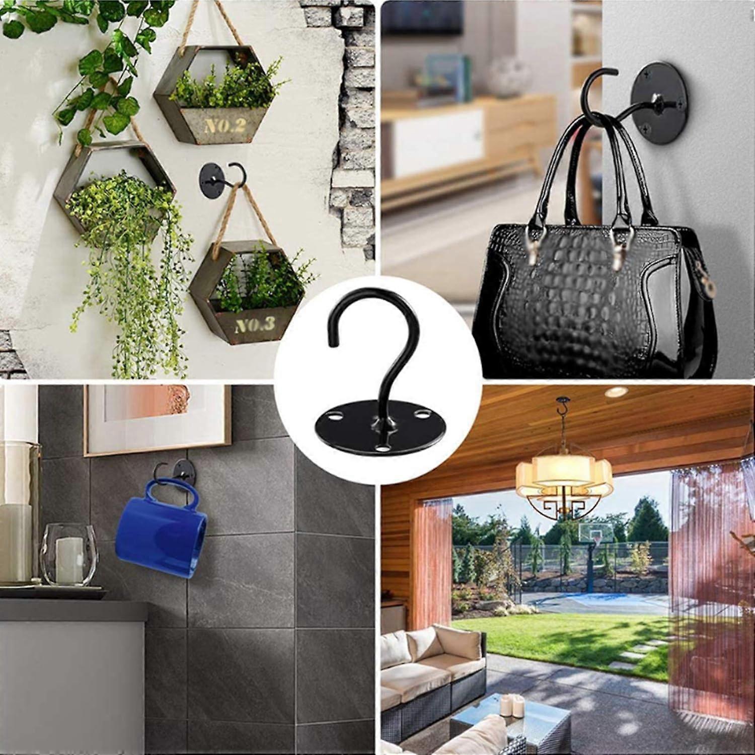 Plant Hook, 4 Pcs Metal Wall Hook, For Hanging Lanterns Bird Feeders Wind Chimes Flower Pots Decorative Light Hooks (Black)