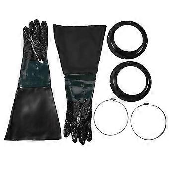 1. and high quality. 2. to outlast many of those other cabinet gloves. 3. Sandblasting gloves and sleeves are cotton lined. Soft and comfortable. Absorbing sweat well. 4. Rough surface to grip items conveniently. the particles can avoid slipping wear, protect your hands and comfort you during your work as well. 5. Glove sizes are based on diameter of opening and the entire length of the sandblast glove. This gloves fit for most sand blasting cabinets!<br><br>size:Length: 60cm/23.6 inch Sleeve opening: 19cm Model Number: Sandblaster Gloves DIY Supplies: Plumbing colour: green + black Material: rubber + metal<br><br>Package Contents: 1 Pair x Sandblasting Gloves 2 x gloves holder 2 x throat hoop<br><br>Only the above package content, other products are not included. Note: Light reflection and different displays may cause the color of the item in the picture a little different from the real thing. The measurement allowed error is +/- 1-3cm.