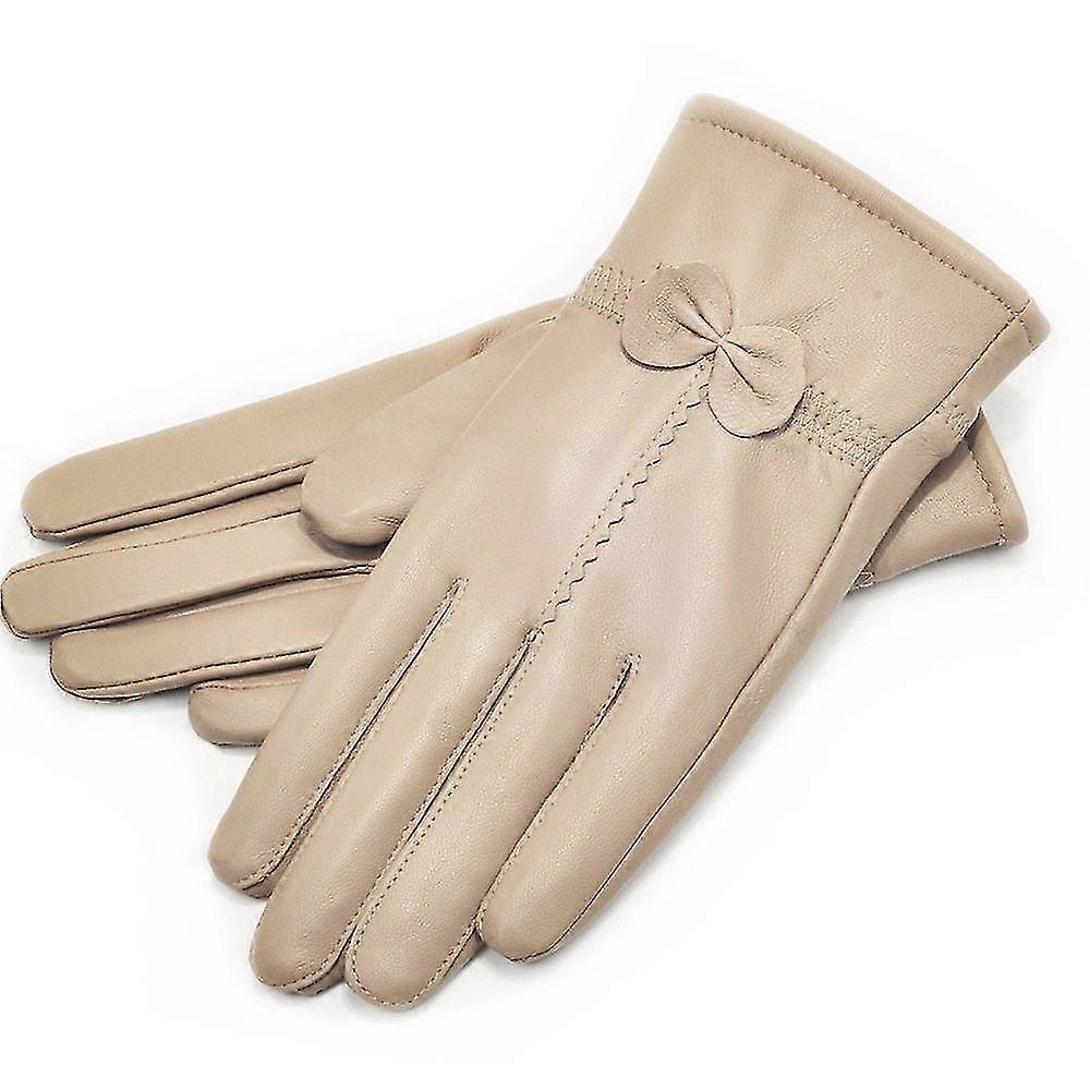 Cashmere Gloves Women Winter Sheepskin Splicing Bow