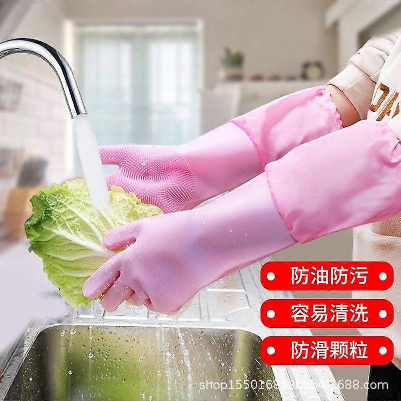 Silicone Pet Bath Gloves Bite Proof Dishwashing Gloves Extended Length Fleece Lined Waterproof Kitchen Cleaning Gloves
