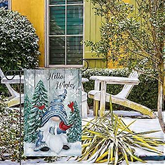 Γεια σας Χειμώνας Gnome Garden Flag 28x40 λινάτσα Καρδινάλιοι Νιφάδες χιονιού Snow Garden Yard σημαίες για το χειμώνα C