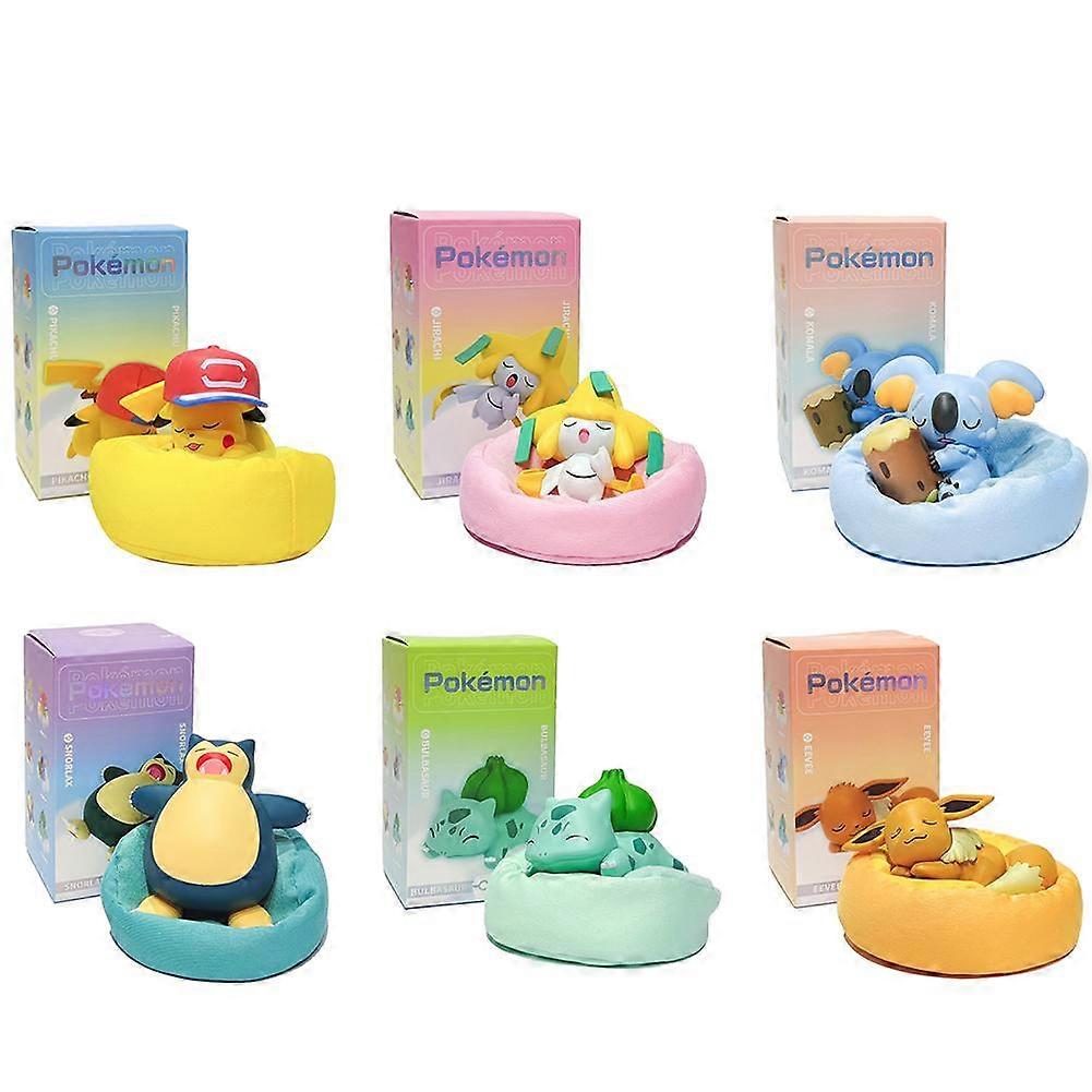 For Pokemon Sleep Decorations Set of 6 Cute Sleeping Figures Pikachu Collectible Resin PVC Statue Home Desk Display Gift for Fans