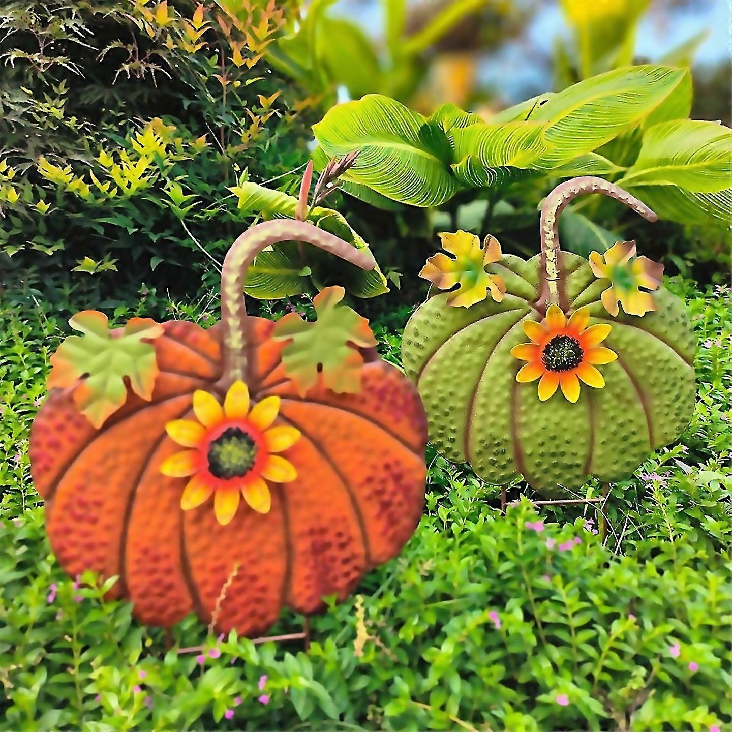 For Metal Pumpkin Garden Stake Fall Decor Yard Stake Sign Decor Greena