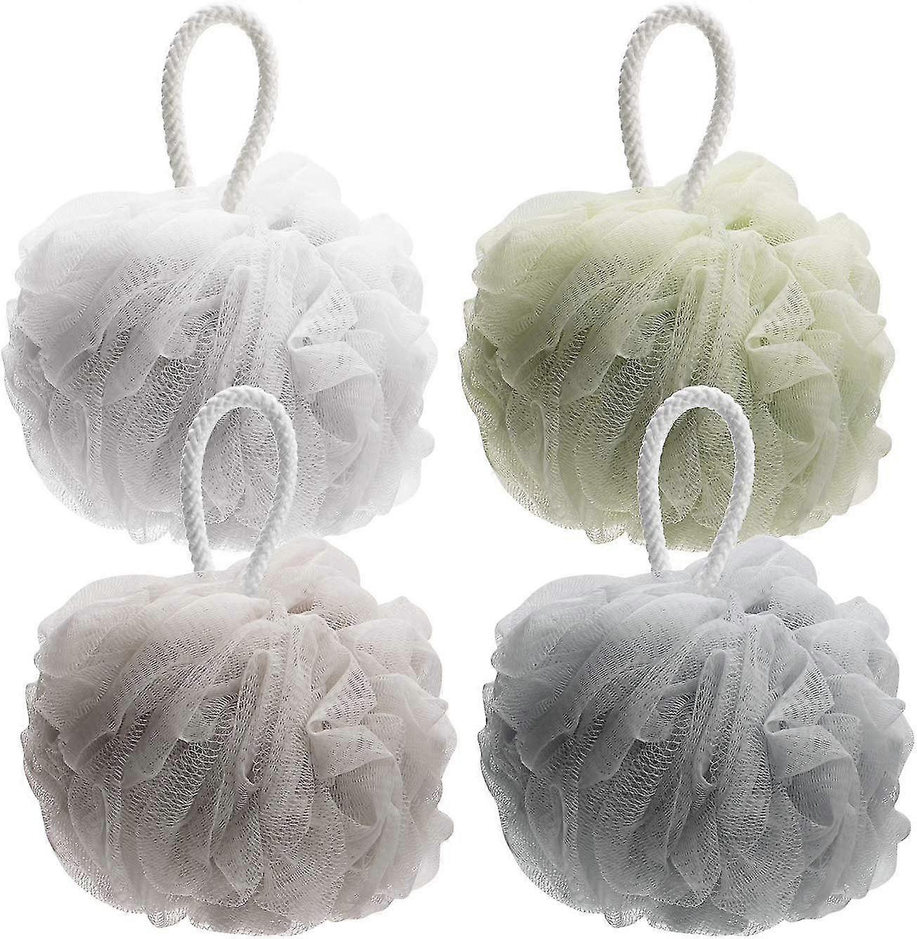 For Shower Sponge 60g Loofahs - Tighten Knot Loofahs Balls, Rich Lathers Mesh Loofah Body Scrubber, Set of 4 Pack in Neutral Colors