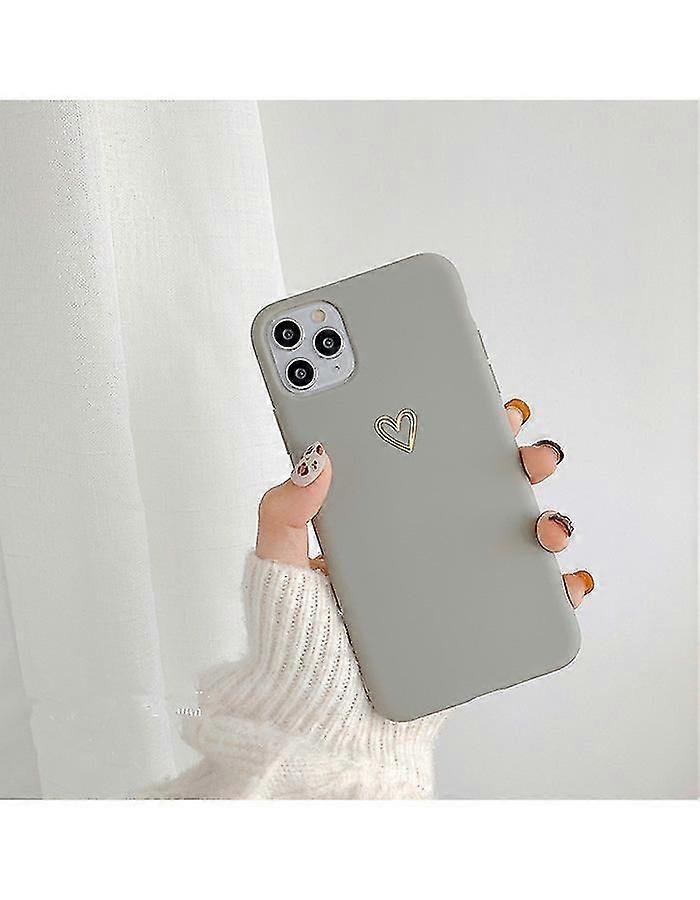 For iPhone Case Soft Liquid Silicone Heart Pattern Full Body Protection Phone Case Cover