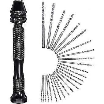 For 2024 26 Pcs Hand Drill Set - Mini Precision Aluminum Hand Drill with Keyless Chuck +25 Drill Bit Twist 0.5-3, DIY Tool Kit