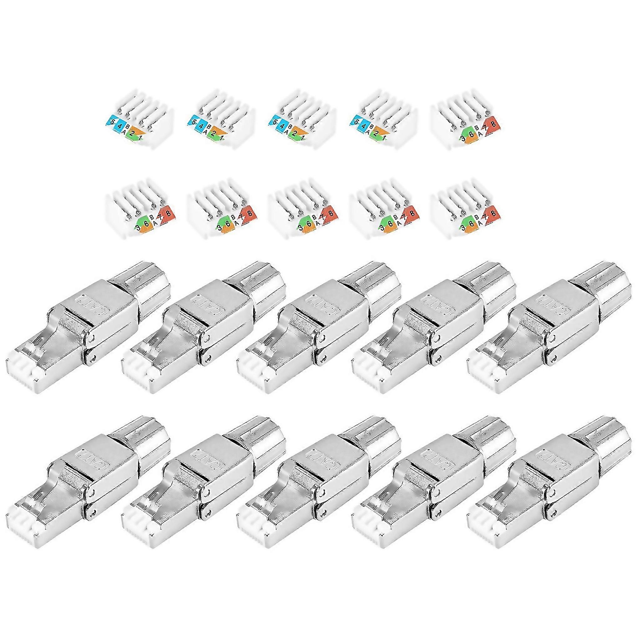 Fangrui Product Details Fangrui Product Details Fangrui Product Details Tool-free And Reusable-the Cat 7 Ethernet Connector Is Designed For Quick And Easy Installation, Without The Need For Crimping Tools. Nut-type Strain Relief Cover Is Easy To Install And Disassemble All-metal Housing-the Sturdy Housing Provides Excellent Shielding And Reduces Alien Crosstalk. Screw-in Metal Stress Relief Sheath Can Improve Shielding And Integrity. Cat 7 Performance-supports Bandwidth Of 500mhz And Fers Data At Speeds Up To 10gbase-t. Very Suitable For Ultra-high-speed Applications, Such As Hdbase-t Graphics. Backwards Compatible With 10gbase-t, 10 Gb Ethernet Highly Compatible-supports 23 Awg Solid Or Stranded Wire. Poe Plus Compliance For Ieee 802.3 Power Over Ethernet (poe+) Applications. Idc Module: T568a Or T568b Suitable For All Types Of Equipment With Standard Rj45 Sockets, Such As Rj45 Ladder Sockets, Rj45 Network Sockets, Rj45 Wiring Boards, Etc. Material:metal + Plastic Colour:silver Package Contents: 10 X Cat 7 Connector Only The Above Package Content, Other Products Are Not