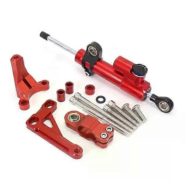 Specifications Hign-concerned Chemical:None Model Name:For HONDA CB1000R Brand Name:GISAEV Origin:Mainland China Material:CNC Aluminum Feature · Introduced a completely new steering damper with great success; The precision high-performance steering damper adopts a progressive damping mechanism. · Works smoothly with normal steering, increases damping force and strengthens steering when sudden steering inputs and loss of control. · Made of high-quality CNC aluminum alloy · Stand available in 4 colors (Black/Titanium/Red/Gold) Fitment For Honda CB1000R 2018-2023 Note * After installation, turn the head to the very right and very left to check whether there is enough room for the activity of steering damper or not. * Check if the steering damper and its kit reach the motorbike or oil tank. If they do or the room is deficient, move the steering damper horizontally to the adequate place.