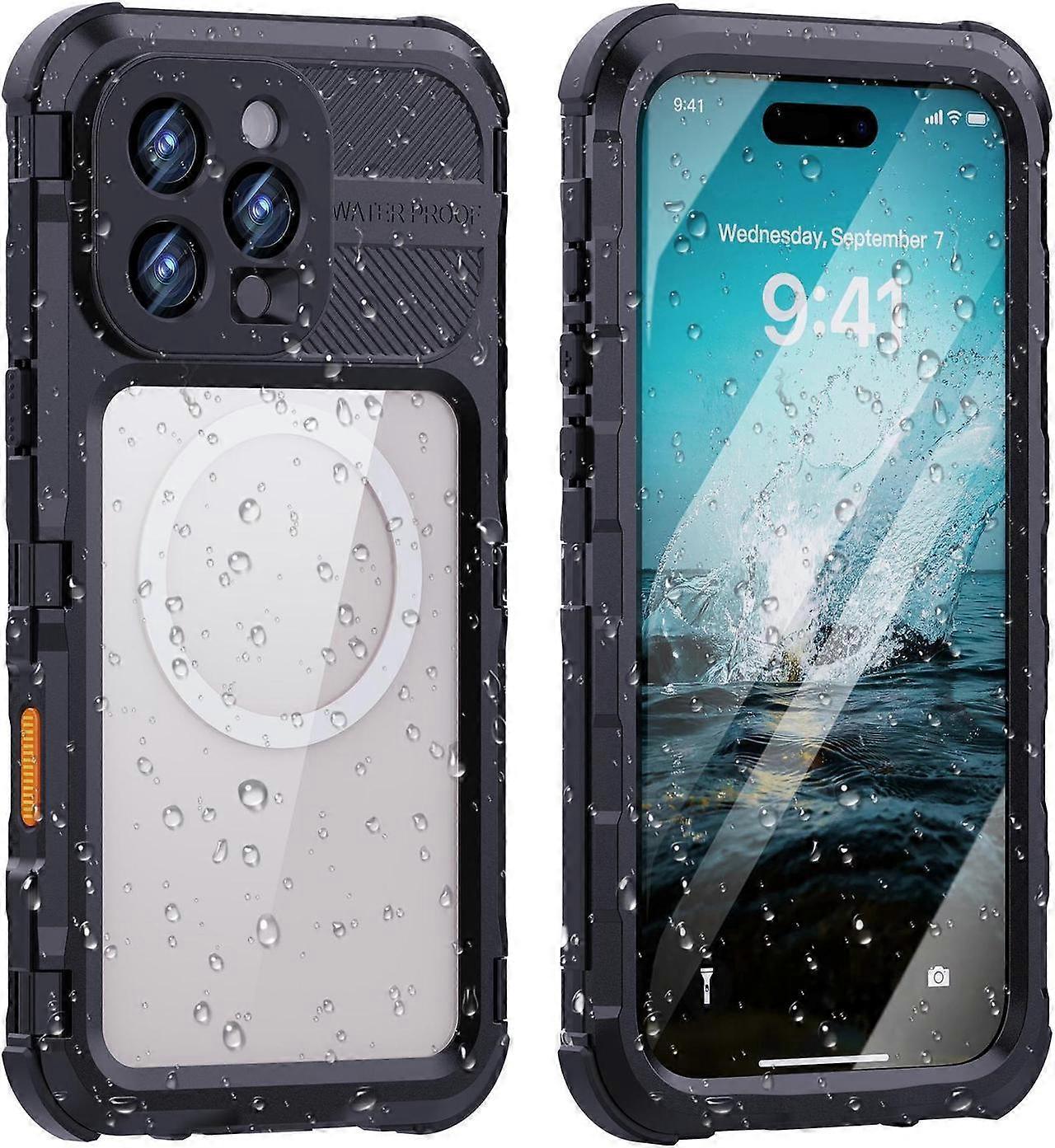 for iPhone 16 Pro Max 6.9 inch Waterproof Case Compatible with MagSafe, Magnetic Waterproof Metal Full Body IP68 Underwater Case Built-in Screen Prote