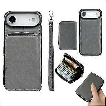 For iPhone Air Case Detachable Zipper Card Bag PU TPU Kickstand Phone Case with Strap