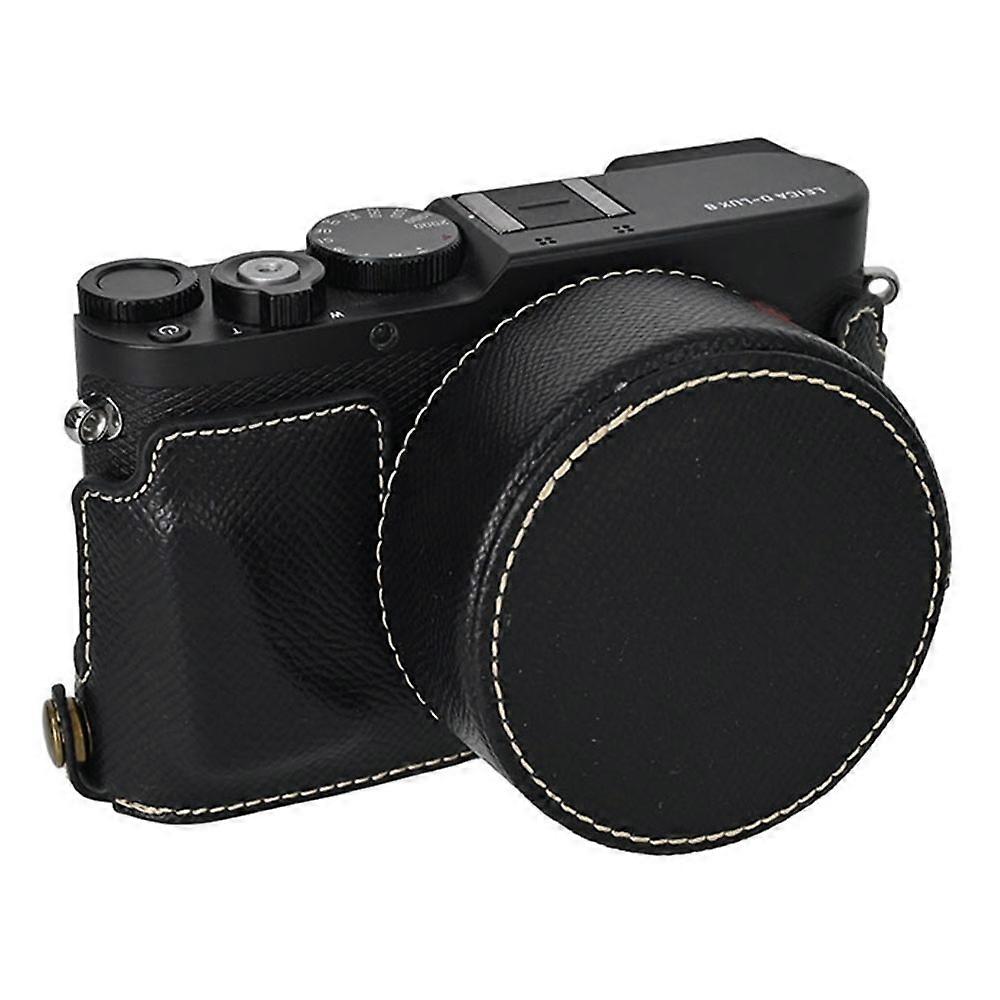 For Leica D-Lux 8 Camera Case PU Leather Protective Cover with Lens Cap - Black