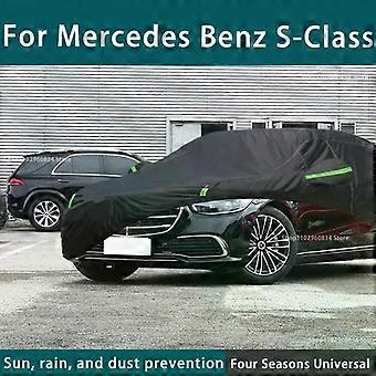 Για Mercedes Benz S Class Πλήρης καλύμματα αυτοκινήτων Εξωτερική προστασία από τον ήλιο Σκόνη βροχή Χιόνι προστατευτικό αντιχαλαζικό κάλυμμα αυτοκινήτου Auto μαύρο κάλυμμα