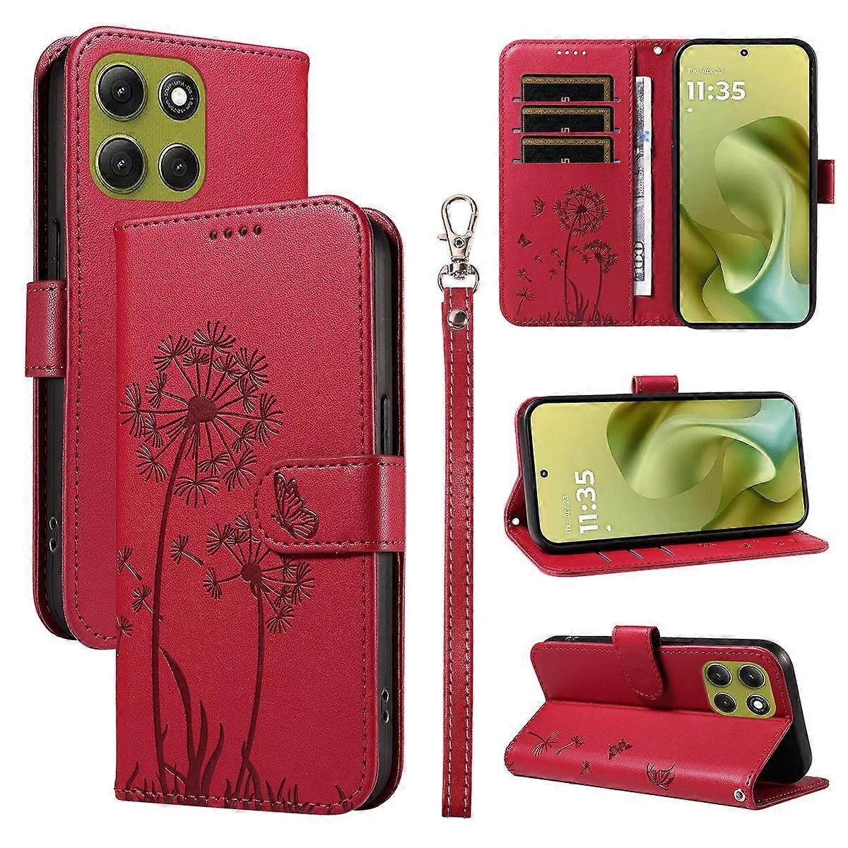 For Motorola Moto G86 5G/ G86 Power 5G Leather Wallet Case with Strap Dandelion Imprint Phone Stand Cover
