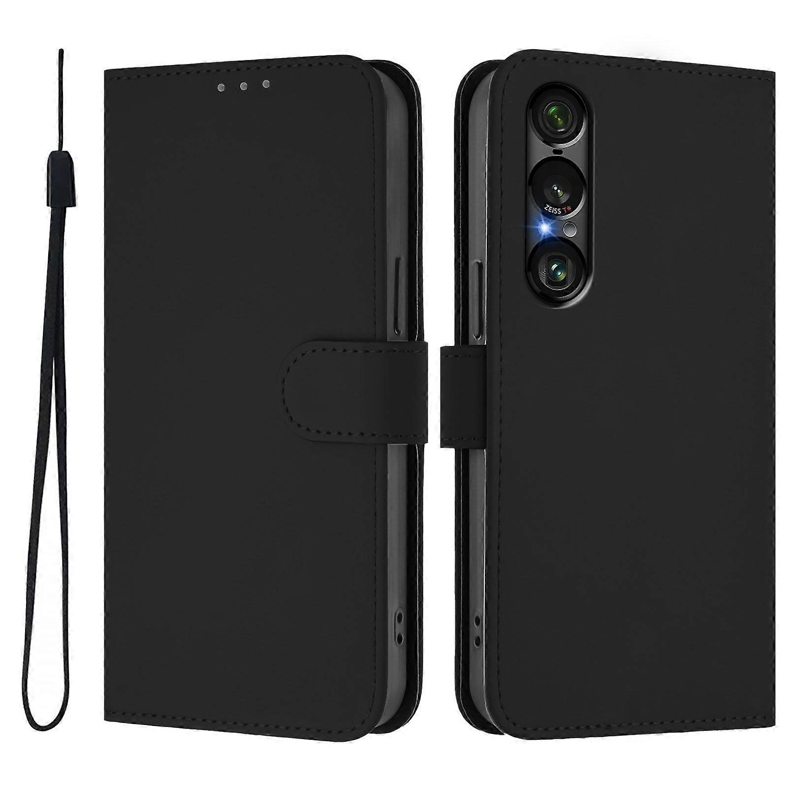 For Sony Xperia 1 VII Case Solid Color Wallet Leather Phone Cover with Strap