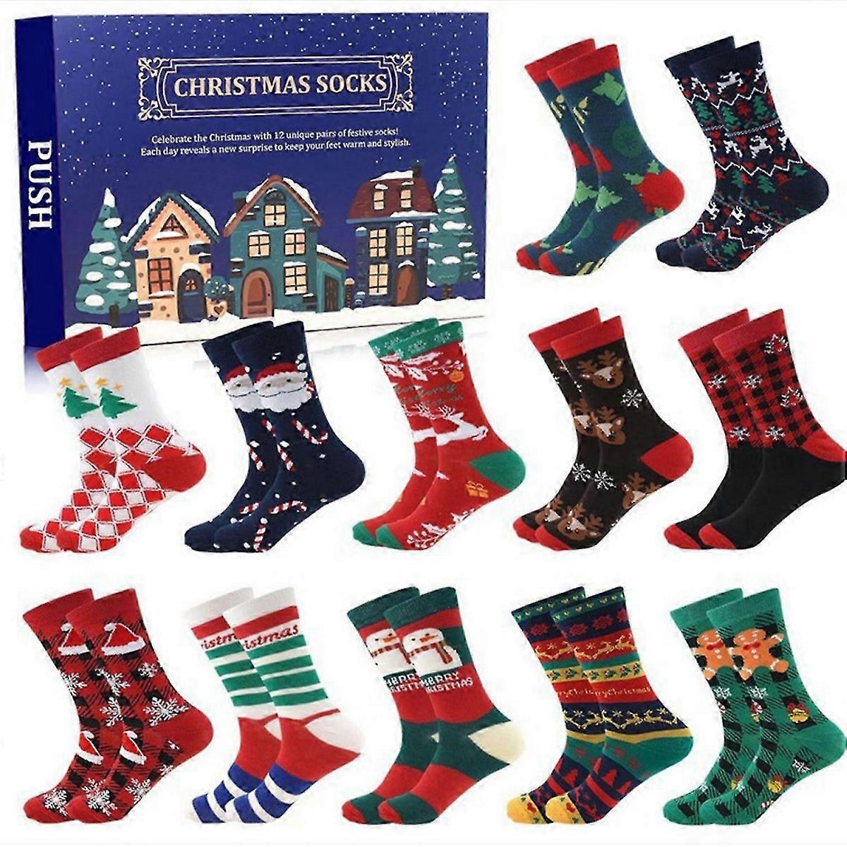 Features 1. Our 2025 men's socks Christmas calendar accompanies you to experience the festive atmosphere. Including 12 pairs of holiday socks with patterns such as Santa Claus, reindeer, Christmas tree, and more. 2. Christmas Countdown Fun: In the 12 days leading up to Christmas, a new pair of socks will be unveiled every day. Add a festive touch to your wardrobe while counting down, giving it a unique charm. 3. Bolds and fun patterns: The design of these men's Christmas socks is full of vitality, such as Santa Claus, reindeer, checkered patterns, and candy canes, making it the perfect choice to add festive joy to every piece of clothing. 4. Comfortable and breathable cotton material: These socks are made of soft cotton material, which is comfortable and warm to wear in cold seasons, ensuring that your feet stay comfortable during winter celebrations. 5. Ideal Christmas Gift for Men: This 12 day Christmas Socks Arrival Calendar is the perfect holiday gift for men who love fun socks. Very suitable for adding fun to festivals. Specification Material: Cotton Color: Blue, Red Size: 29.5 x 22 x 3.5 cm Weight: 300 g Package Include: 1x Christmas Socks Advent Calendar