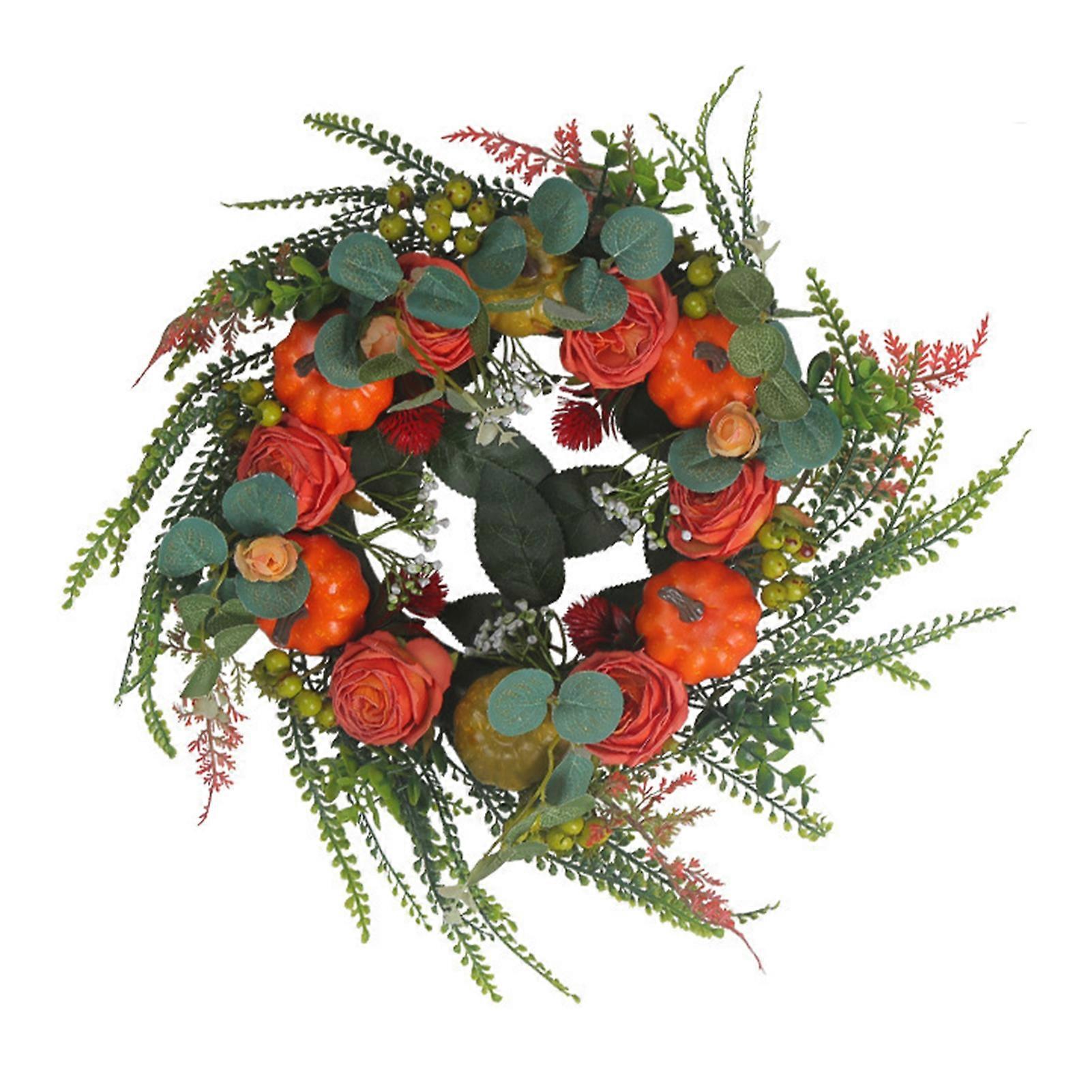 Peony Pumpkin Garland Autumn Realistic Peony And Pumpkin Harvest Garland for Front Door Reusable Farmhouse Wreath for Thanksgiving Halloween Seasonal