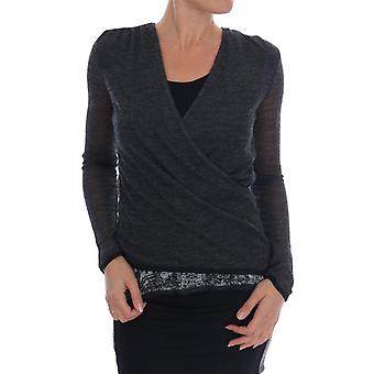 Γκρι Μάλλινο δαντελένιο τοπ μακρυμάνικο μπλουζάκι