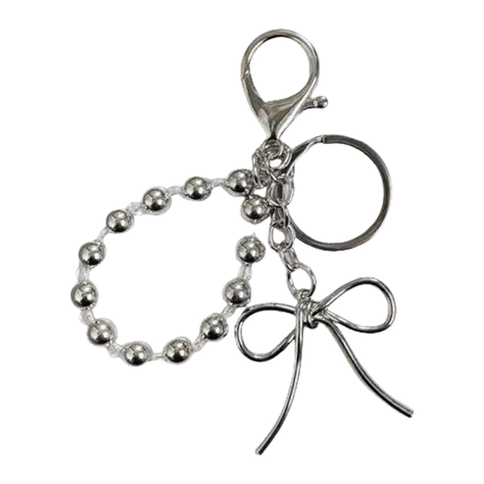 Sweet Heart Bowknot Beaded Keychain Pendant Fashion Lovely Hangings Ornament Keyring Backpack Decoration Charm Jewelry