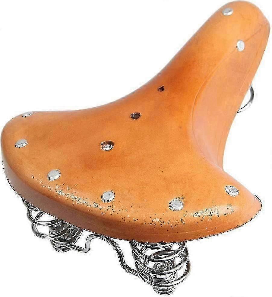 Genuine Leather Spring Bike Saddle, Retro Replacement Leather Bicycle Saddle Cushion Spring Seat