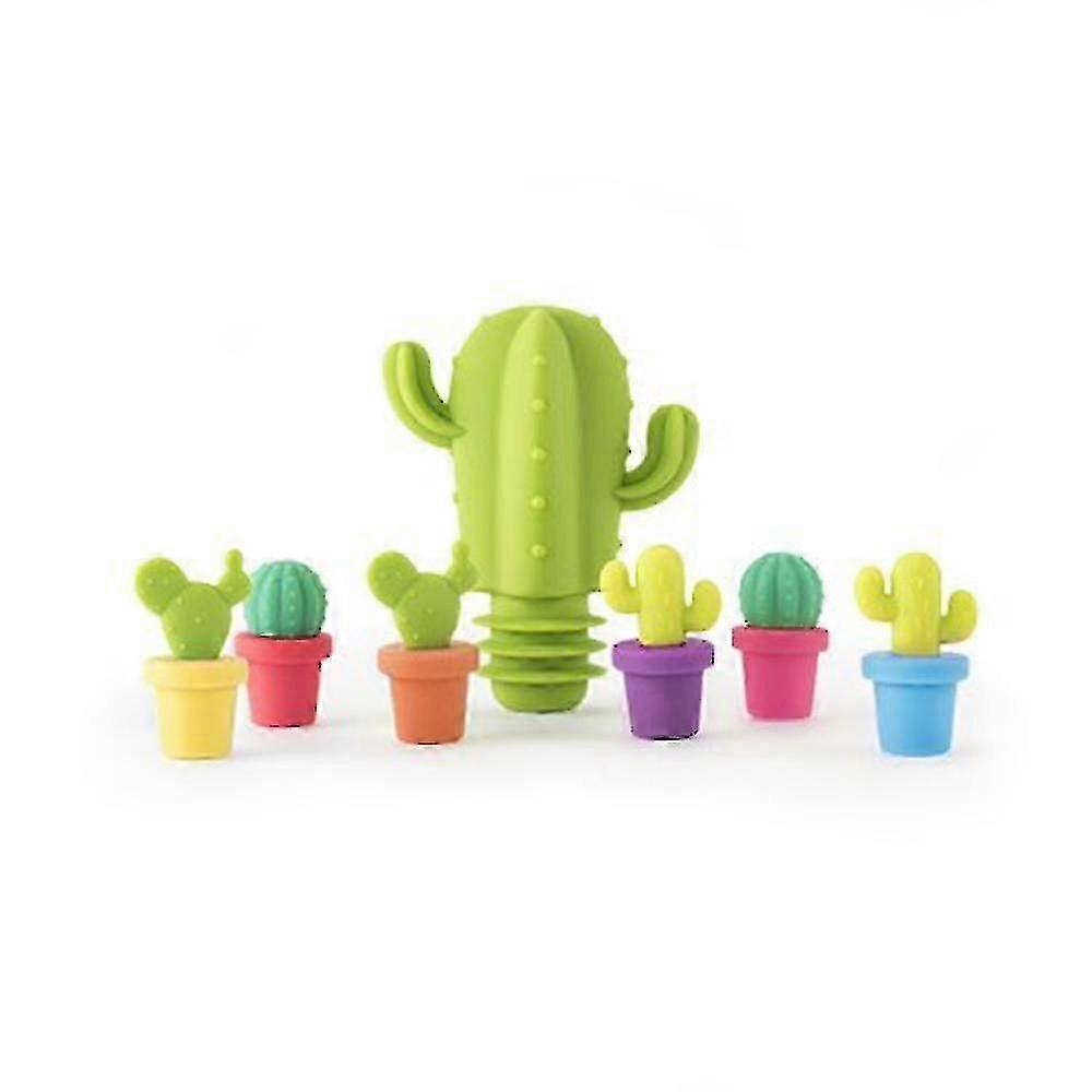 Cactus Wine Glass Charms And Drink Markers With Bottle Stopper Set, Silicon