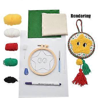 Punch Needle Embroidery Starter Kit Threading Woven Fabric Embroidery Hoop Yarn Punch Tool