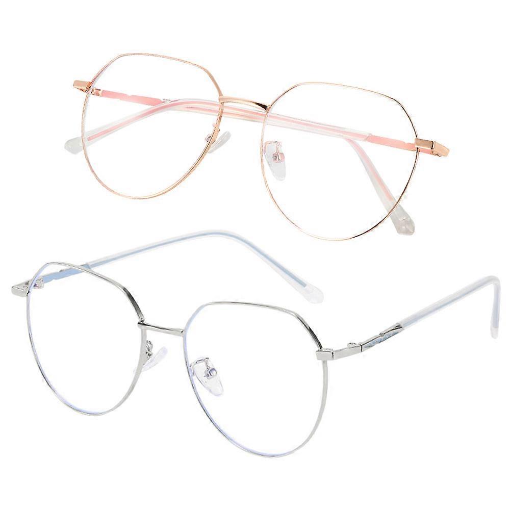 Gold and Silver Metal Frame Eyeglasses for Wearing 2Pcs Anti-Blue Light Blocking Glasses