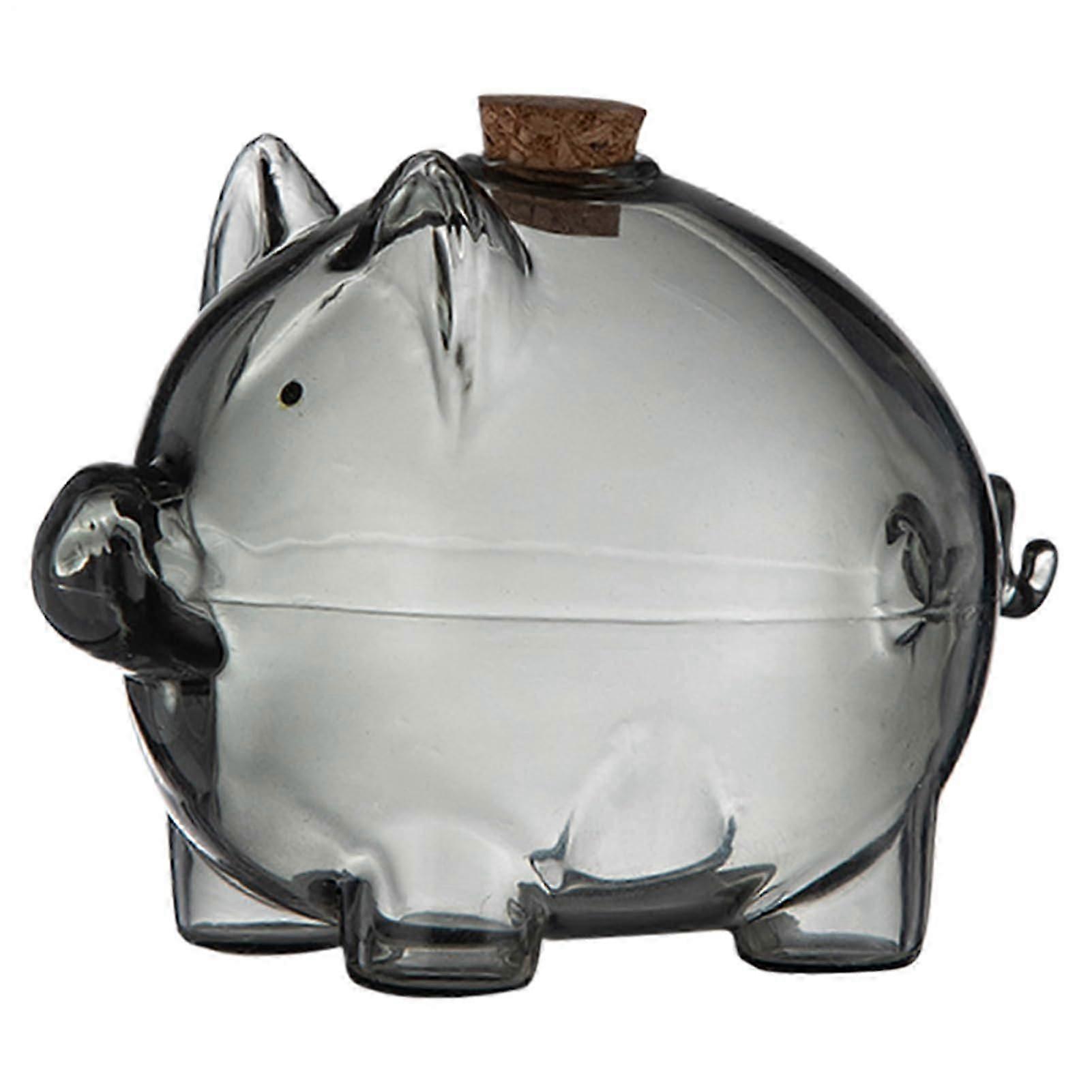 Glass Coin Bank, Glass Money Bank Pig Shape Saving Glass, Small Gold Bean Container for Table, Bookshelf Black