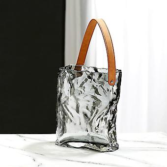 Γυάλινο βάζο τσαντών, βάζο πορτοφολιών με τη φούσκα για τη δεξαμενή ψαριών, βάζο λουλουδιών σχήματος τσάντας (γκρι, χρυσό)