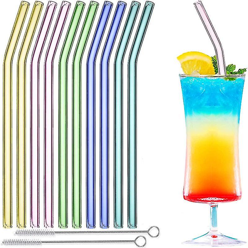 Glass Straw 10pcs Pink Bent Glass Straw Set 8'' 200mm Long Reusable Straws With Cleaning Brush For Tumblers Cups Mason Jars