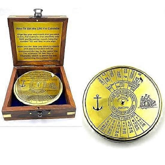 Shiny Finish Brass 100 yrs Calendar Paper Weight with wood box Maritime Gift Item