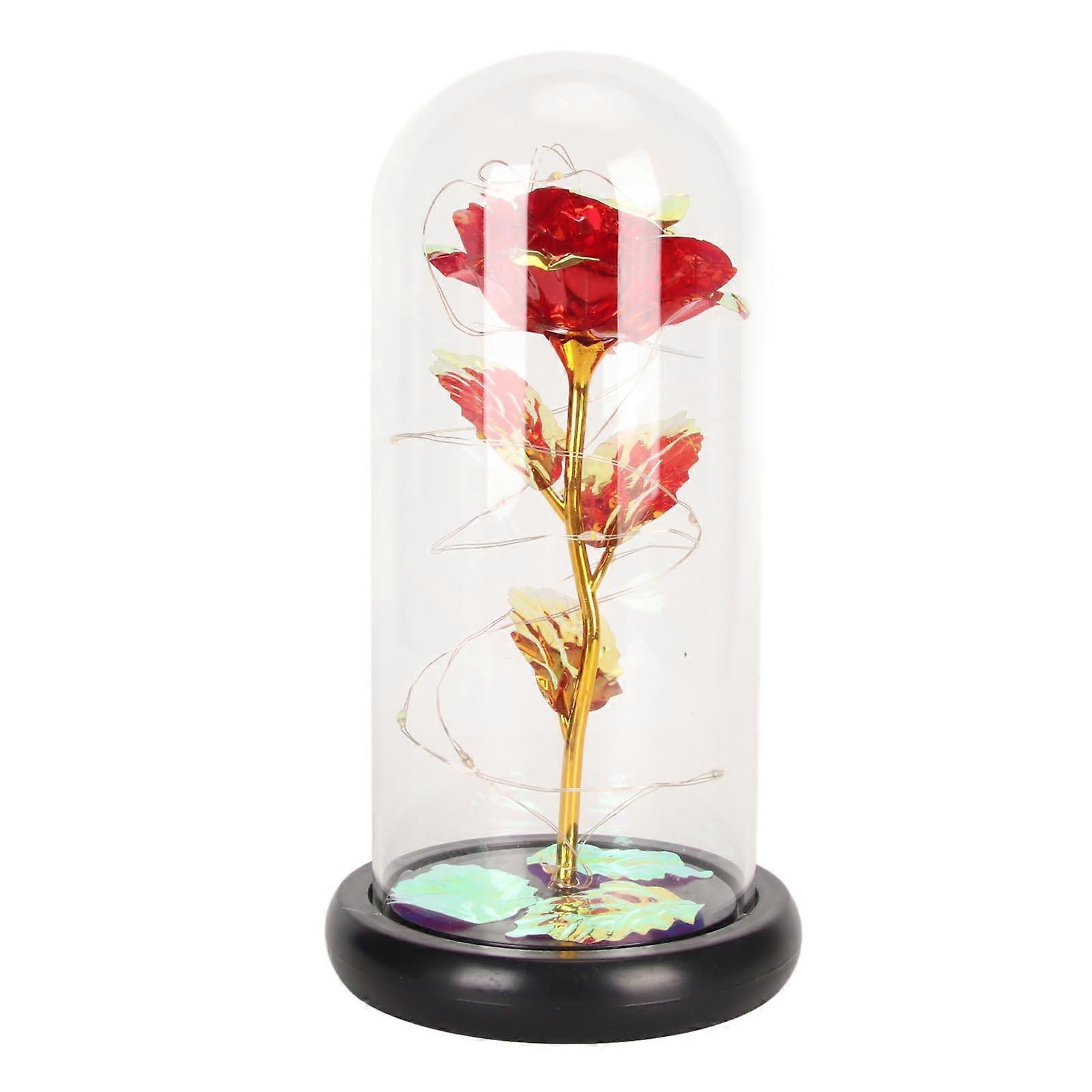 Glass Rose Light Decorative Romantic Beautiful LED Artificial Flower in Glass Dome for Bedroom Living Room Red