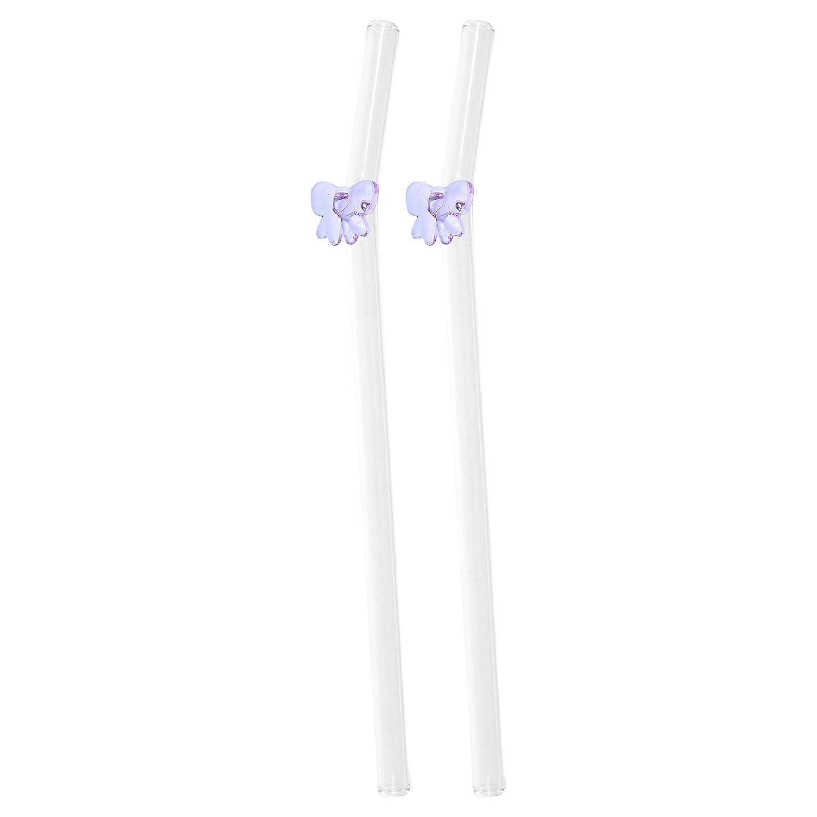 Charming Bow Design Glass Straws For Special Occasions And Gatherings 4Pcs Purple Color