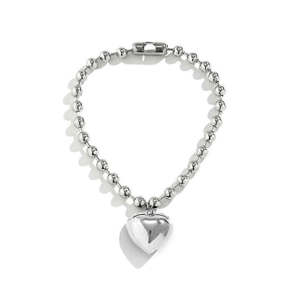 Female Round Bead Chain Niche Collarbone Chain Silver Love-shape Heart Necklace